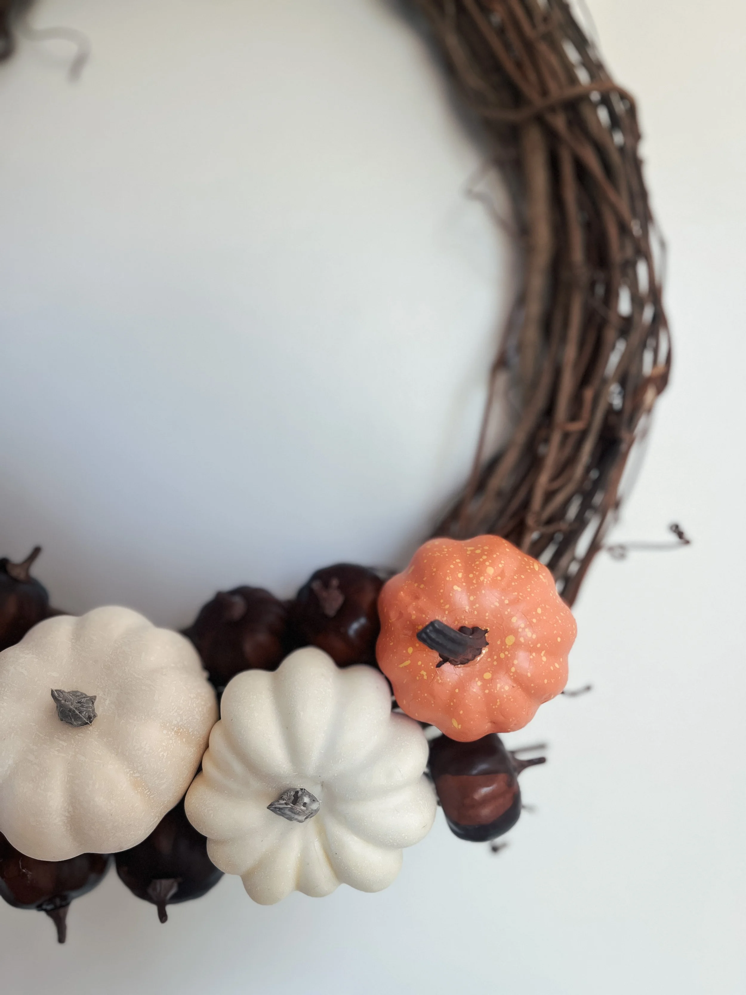 Shop › Pumpkin Spiced Image 1 of 3 Image 2 of 3 Image 3 of 3 Pumpkin Spiced $40.00 A 15 inch grapevine wreath covered in pumpkins and tied with a velvet orange ribbon. Add To Cart Added! A 15 inch grapevine wreath covered in pumpkins and tied with a velvet orange ribbon.